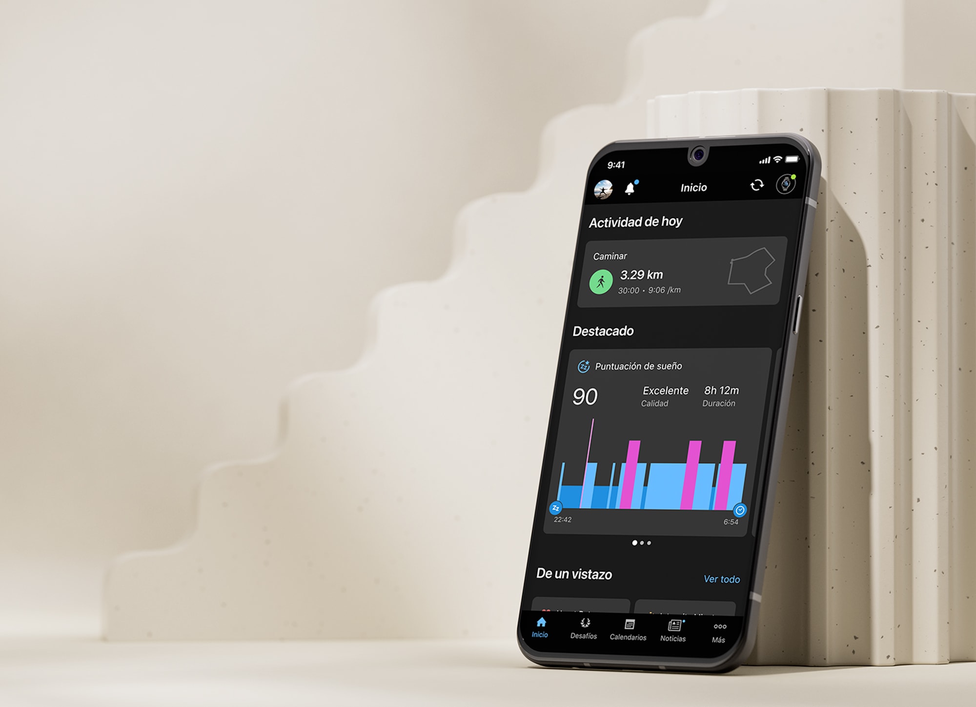 Recibe una puntuación del sueño y orientación personalizada para saber cuánto sueño necesitas y cómo puedes mejorarlo. Incluso puedes realizar un seguimiento de las diferentes fases del sueño y las siestas, y consultar varias métricas clave del periodo de sueño, como el estado de VFC para conocer mejor tu salud1.